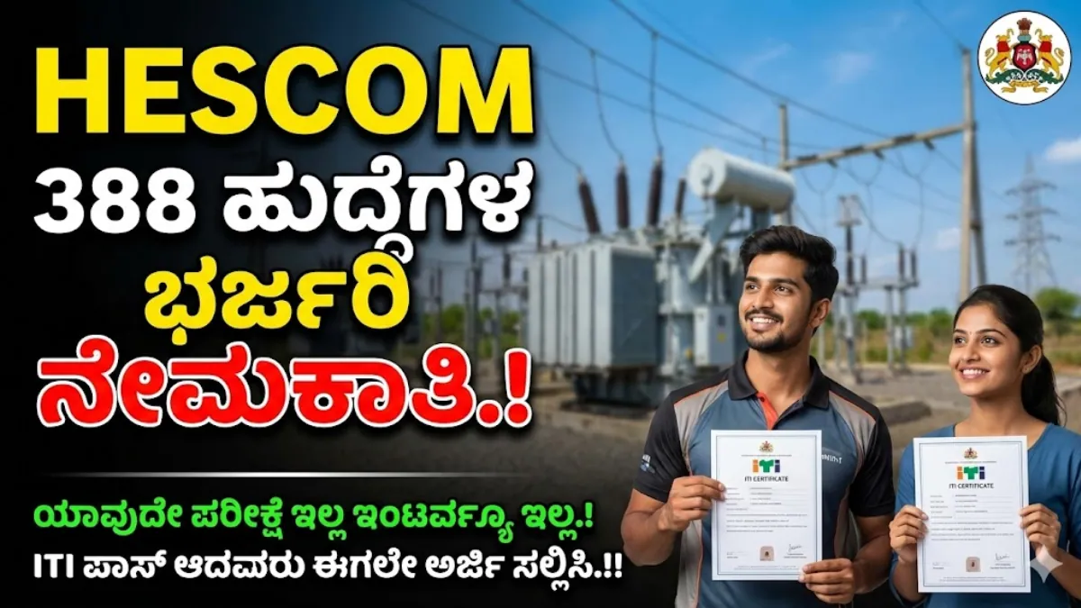 HESCOM 388 ಹುದ್ದೆಗಳ ಭರ್ಜರಿ ನೇಮಕಾತಿ.! ಯಾವುದೇ ಪರೀಕ್ಷೆ ಇಲ್ಲ ಇಂಟರ್ವ್ಯೂ ಇಲ್ಲ.! ITI ಪಾಸ್ ಆದವರು ಈಗಲೇ ಅರ್ಜಿ ಸಲ್ಲಿಸಿ.!!